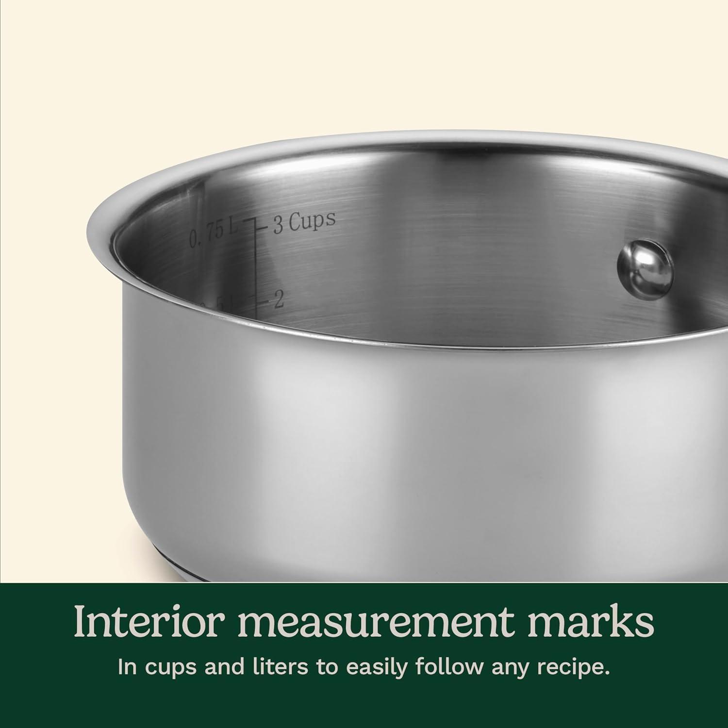 The kitchens of France were the inspiration behind our elegant Chef's Classic Stainless Cookware Collection, and the 1 Quart Saucepan with Cover is true to its spirit. The 1 Quart Saucepan features measurement markings and an induction-ready base for ease of use in any kitchen. We guarantee it with a lifetime warranty.