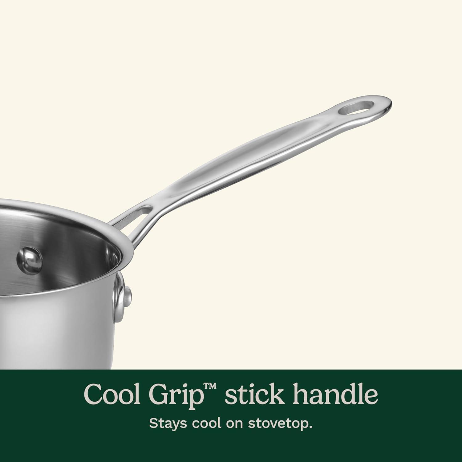 EXCEPTIONAL HANDLING: cool grip handle is solid stainless steel riveted stick handles that stay cool on the stove top and provide a safe a solid grip