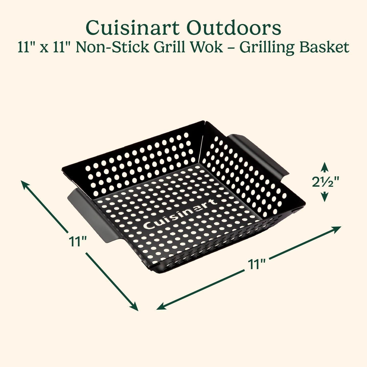 Cuisinart 11″ x 11″ Non-Stick Grill Wok, Perforated BBQ Grill Basket for Grilling Veggies, Meat & Stir-Fry, Outdoor Grilling Basket for Charcoal and Gas Grills(11 x 11-Inch)