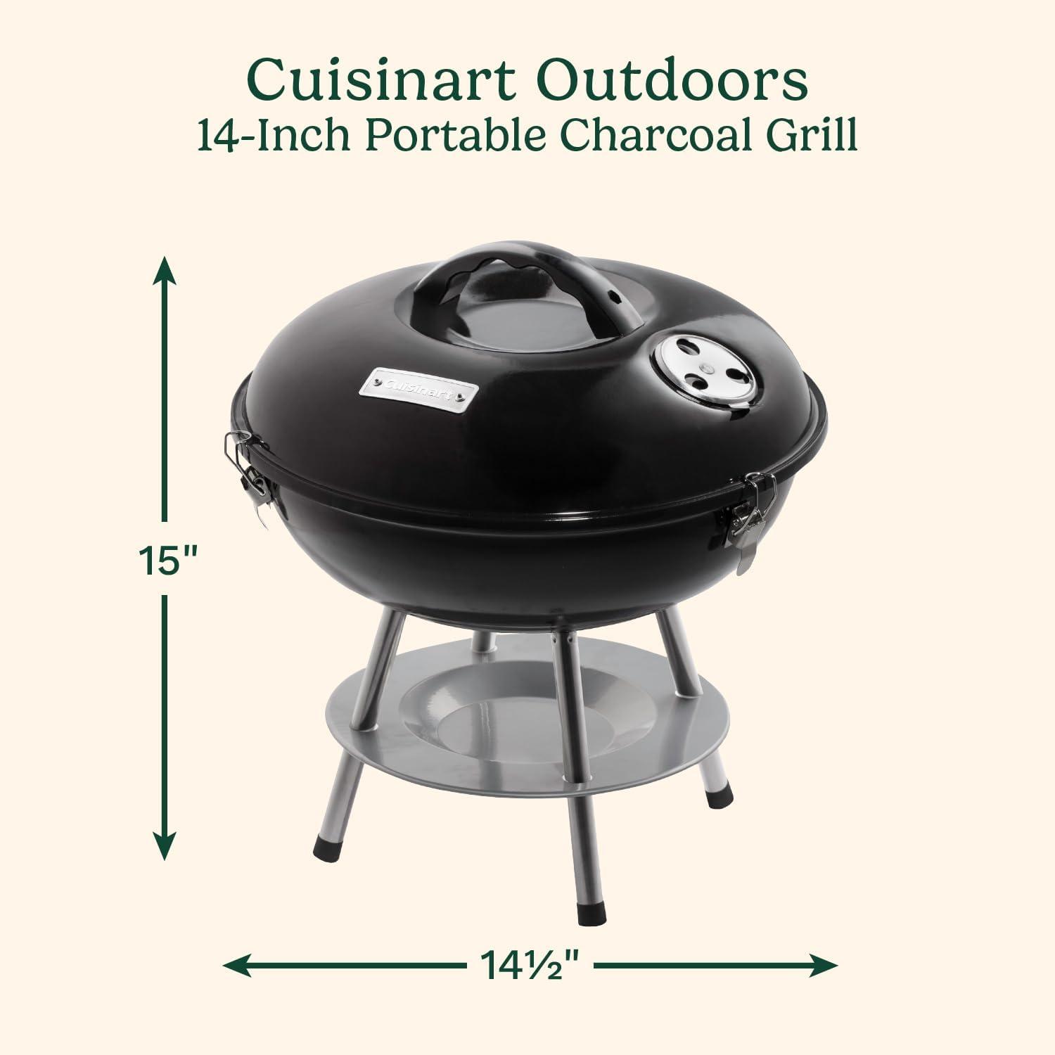 Cuisinart 14″ Portable Charcoal Grill, Tabletop Outdoor Small Grill with Locking Lid and Dual Vents, Chrome Plated Travel Size BBQ Perfect for Camping, Tailgates, Cookouts, Black(Portable Charcoal Grill 14″ (Black))