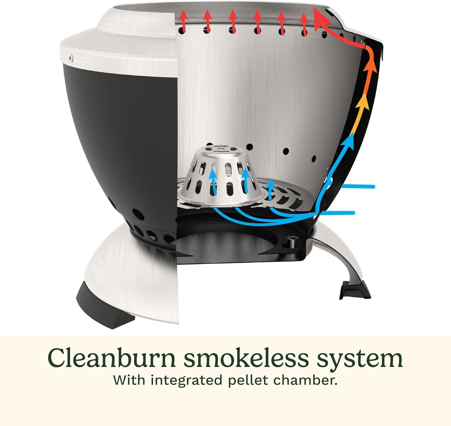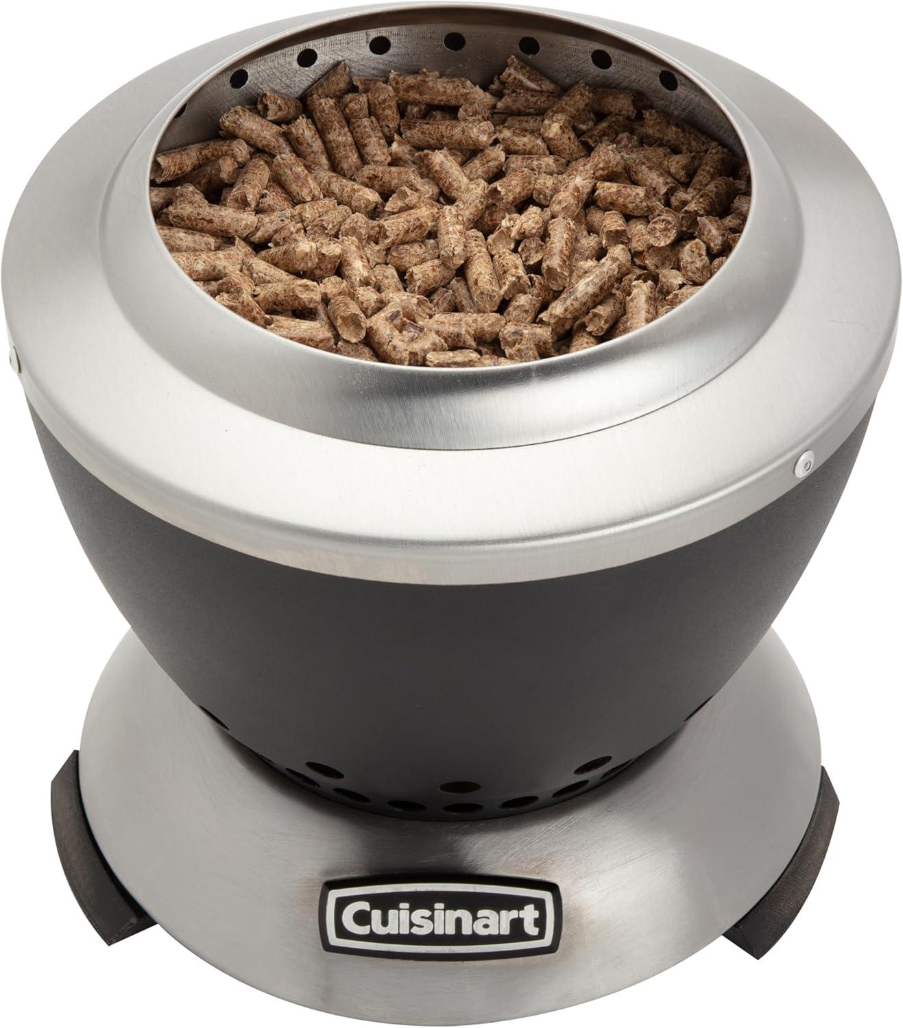 Enjoy the warmth of a roaring fire without the smoke with the patented Cuisinart 19.5” Cleanburn Smokeless Fire Pit. Say goodbye to shuffling seats to avoid smoke blowing in your face! Designed for enhanced airflow, this outdoor fire pit minimizes smoke and maximizes heat, creating a cozy centerpiece for your outdoor space. Elevating legs and an innovative curved double-wall design pulls cool air through bottom vents, feeding the fire and heating the air as it rises. This hot air escapes through top vents, burning off ash and smoke for a faster, cleaner, and smokeless fire experience. The durable stainless steel build ensures long-lasting performance, while the lightweight design and integrated handle make it easy to move. With quick assembly and an ash cleanup system, it’s the perfect choice for patios, backyards, and outdoor gatherings. Its sleek design, portability, and low-maintenance features make this smokeless fire pit a must-have for cozy evenings and lively gatherings.