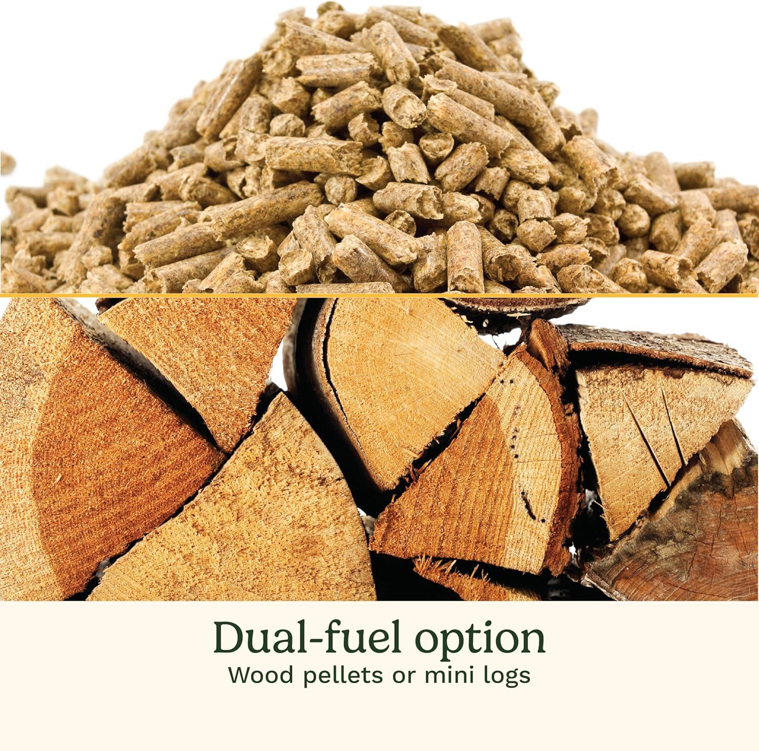 ENHANCED AIRFLOW SYSTEM: Elevating legs, bottom vents, and curved walls improve oxygen flow for fast ignition and efficient burning of wood logs or chunks up to 14″.