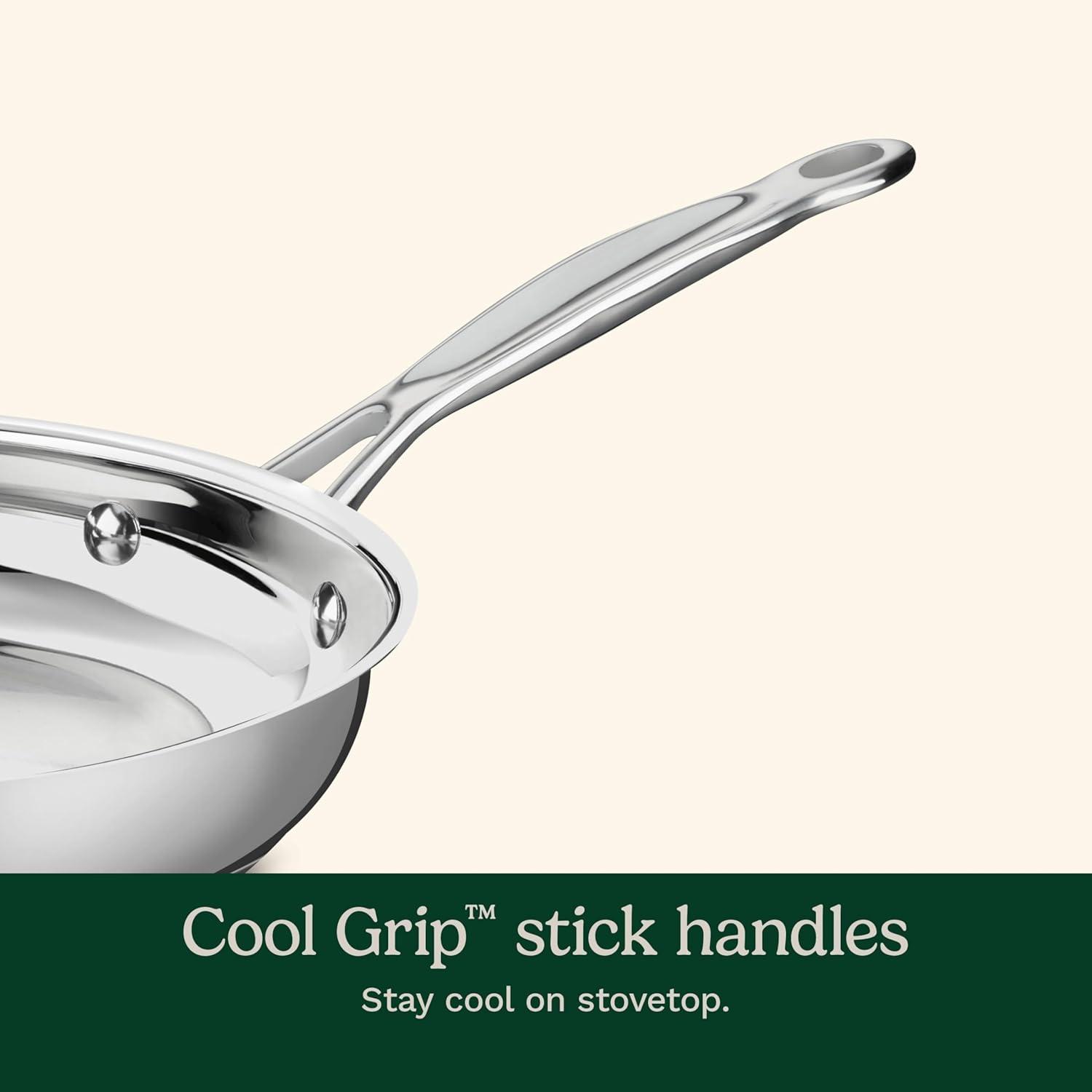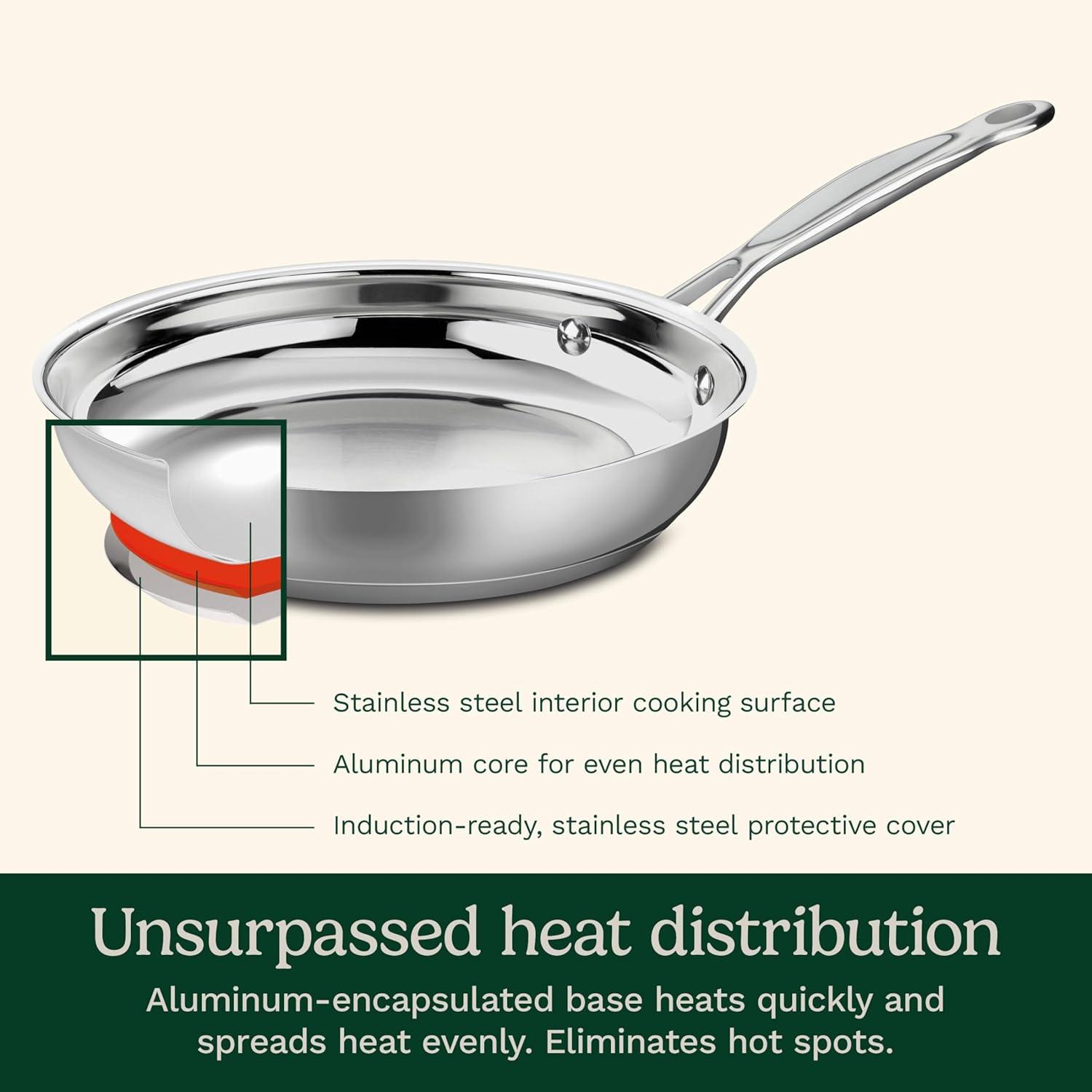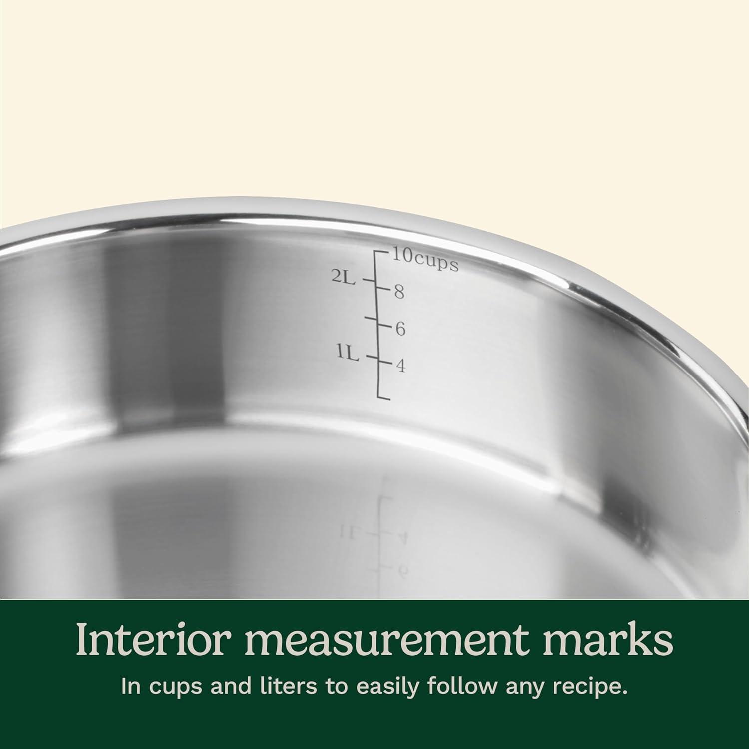 The 10 Piece Set includes pans for virtually any cooking task a home chef undertakes with measurement markings for ease of use. We also included a second skillet and the versatile sauté pan to the 7 Piece Set to allow cooks to prepare more dishes at once, or make larger portions. Features: Set includes:|1.5 Quart Saucepan with Cover|3 Quart Saucepan with Cover|3.5 Quart Saucepan with Helper Handle and Cover|8 Quart Stockpot with Cover 8″ Skillet 10″ Skillet|Induction-ready|Mirror finish. Classic looks professional performance.|Aluminum encapsulated base heats quickly and spreads heat evenly. Eliminates hot spots.