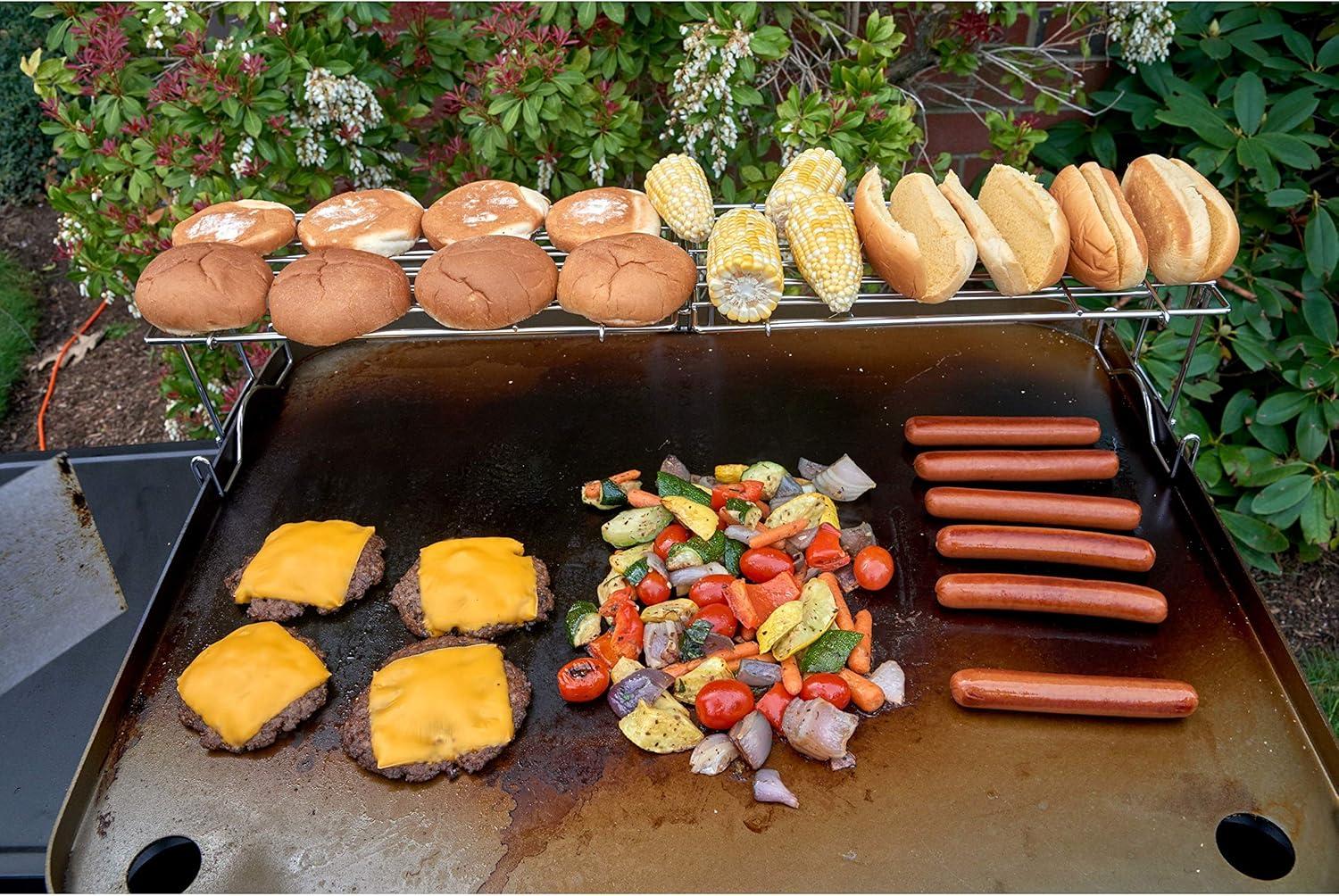 PERFECT HIEGHT: This Warming Rack is low enough to the griddle to keep food warm and high enough to allow food to still be cooked on the griddle underneath it.