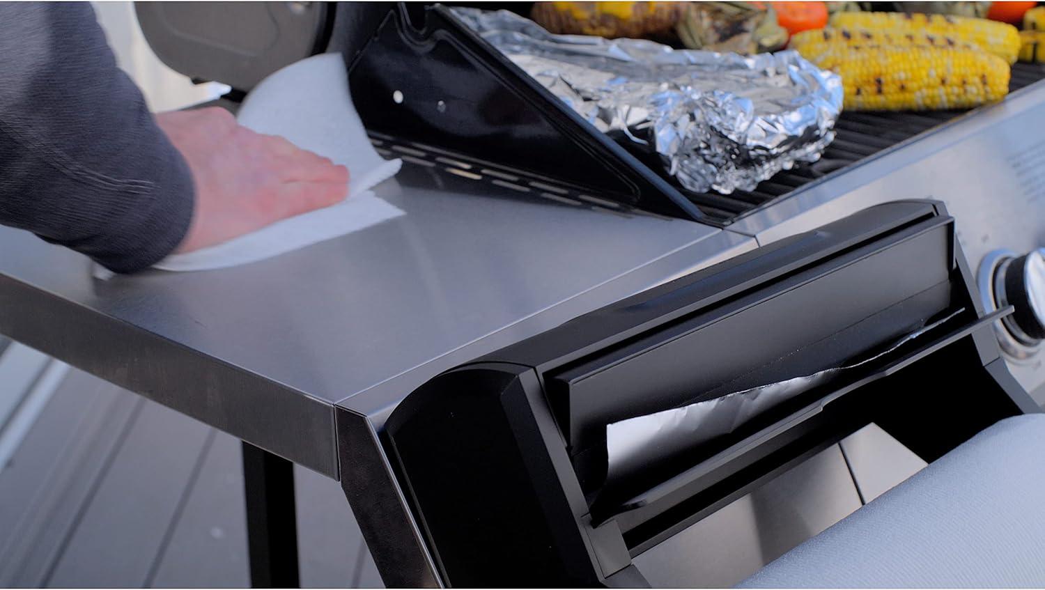 The Cuisinart 18” Butcher Paper Holder will take your smoking game to the next level! Growing in popularity among the BBQ community, butcher paper helps keep your meat moist by sealing in the juices and keeping the meat tender. Butcher paper is breathable, compared to foil, so it allows additional smoke flavor in while preventing it from losing moisture towards the end of the smoke. This holder features a non-slip grip on the base, keeping it in place while tearing sheets. Roll changing is easy with the dowel holder and arms that lock into the open position. Arm lifts to keep the roll in place, the serrated edge allows straight, clean cuts every time, making wrapping meat quick and easy. The holder has a compact fold for easy storage when not in use. The Cuisinart 18” Butcher Paper Holder helps you pull butcher paper with confidence, making wrapping your meat easier than ever!