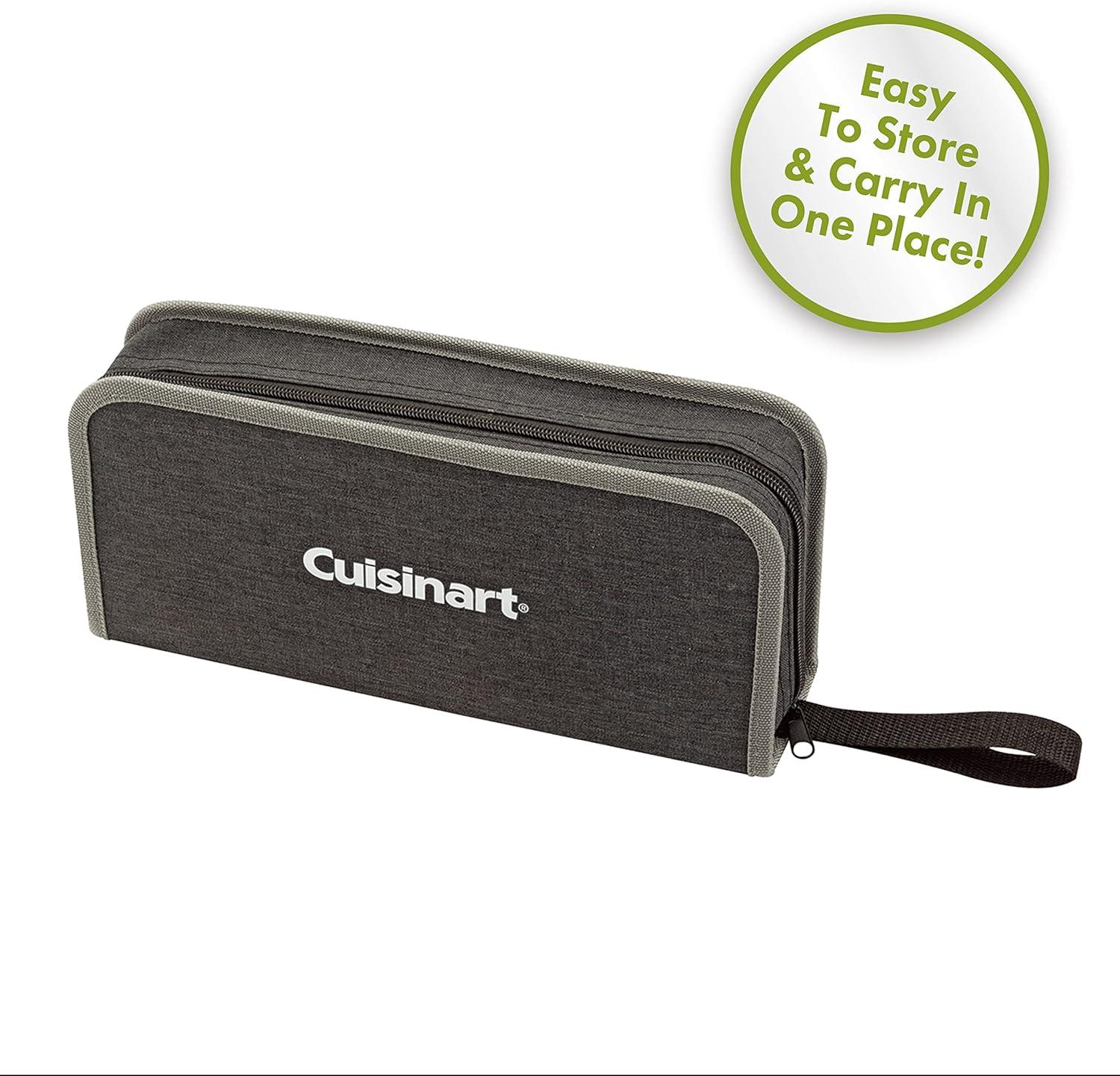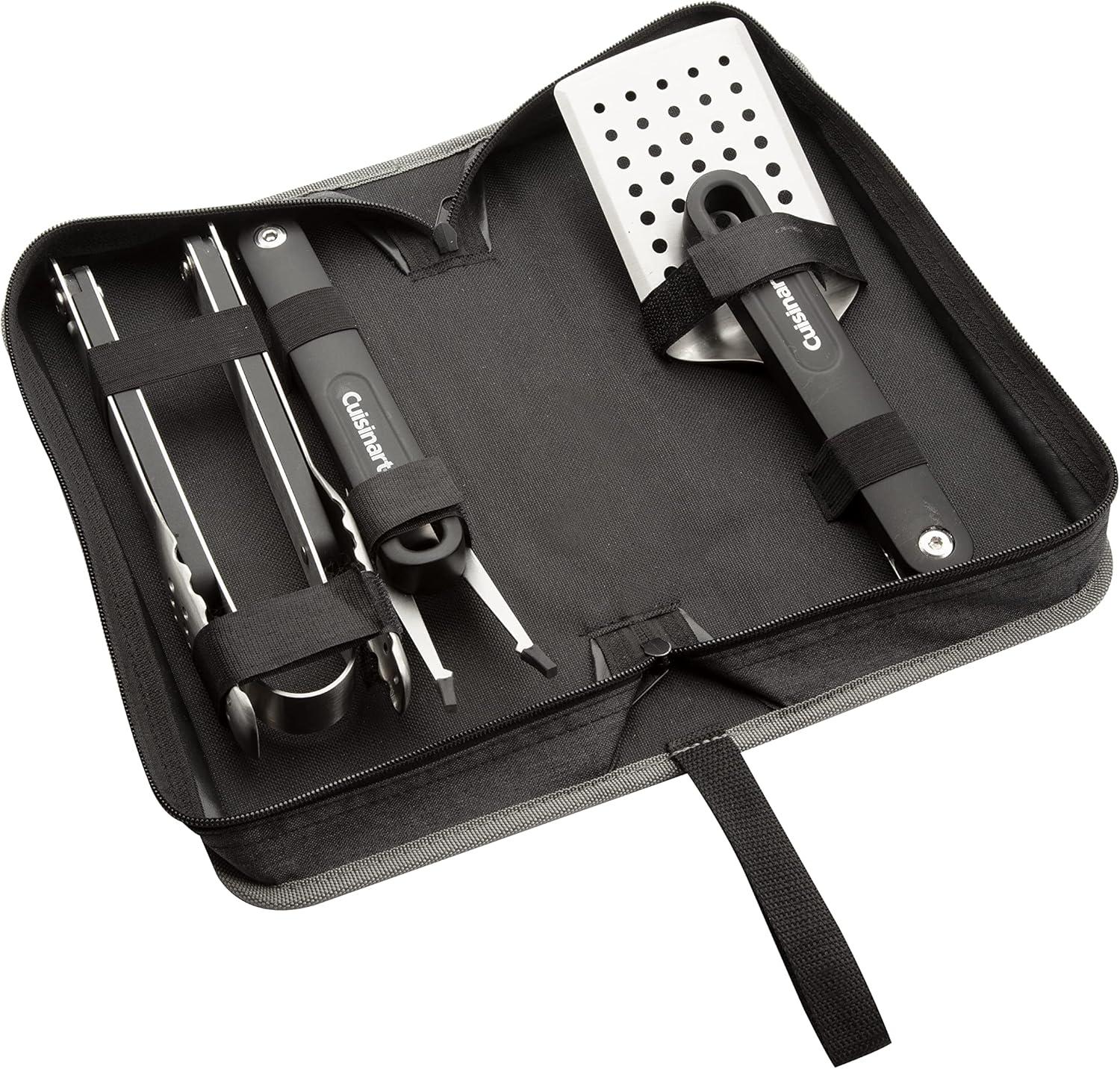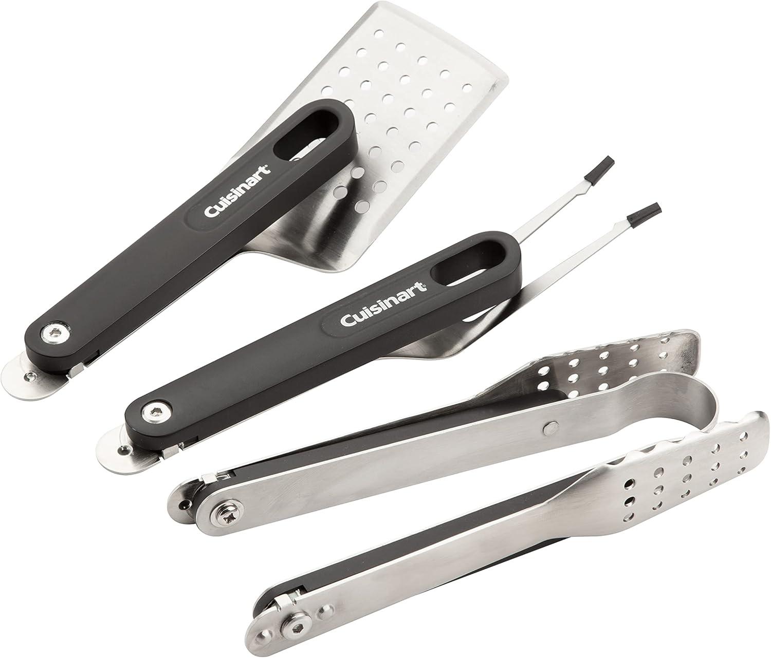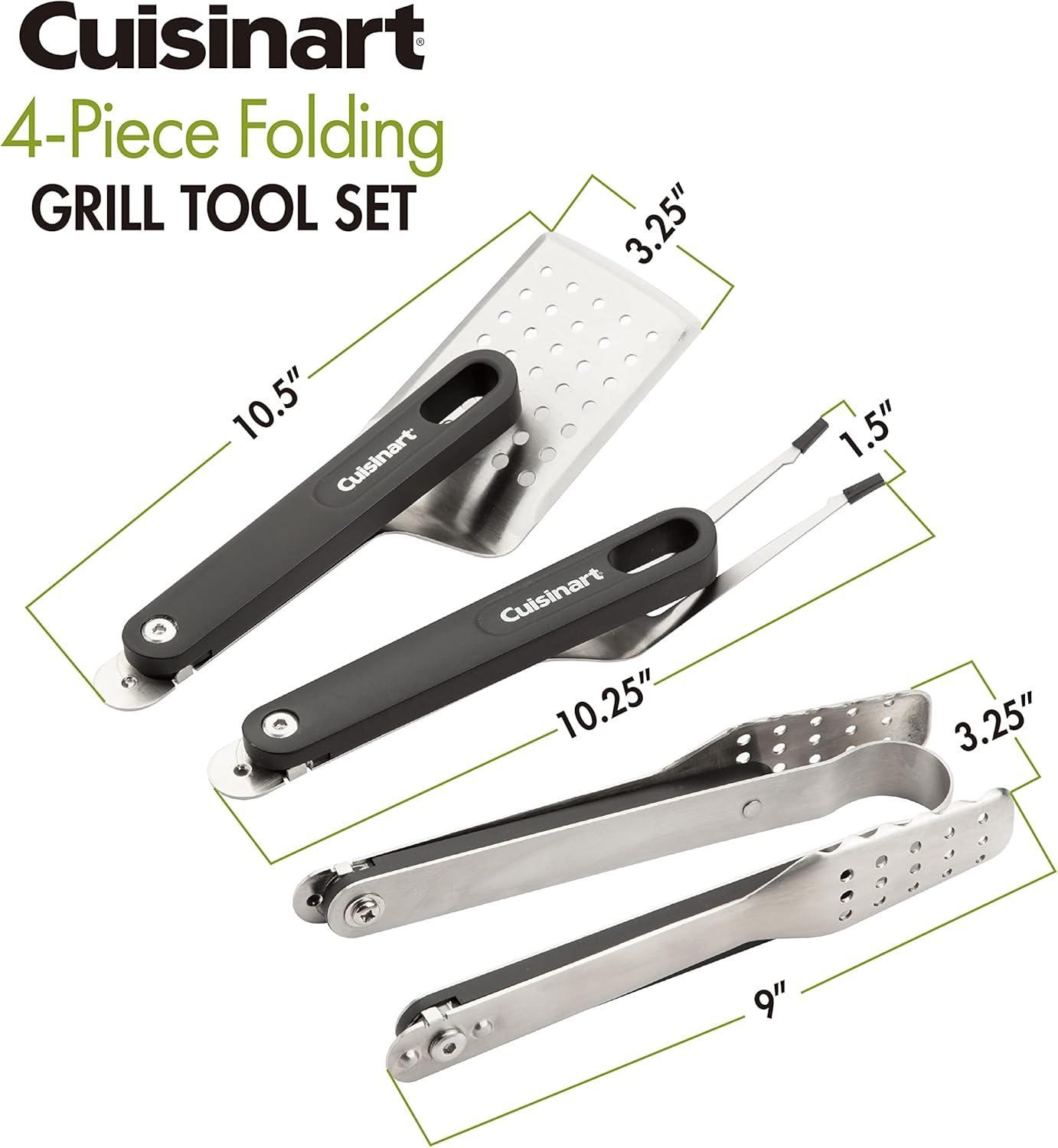 INCLUDES: The Cuisinart 4 Piece Folding Grill Tool Set includes a spatula, tongs, fork, and carrying case