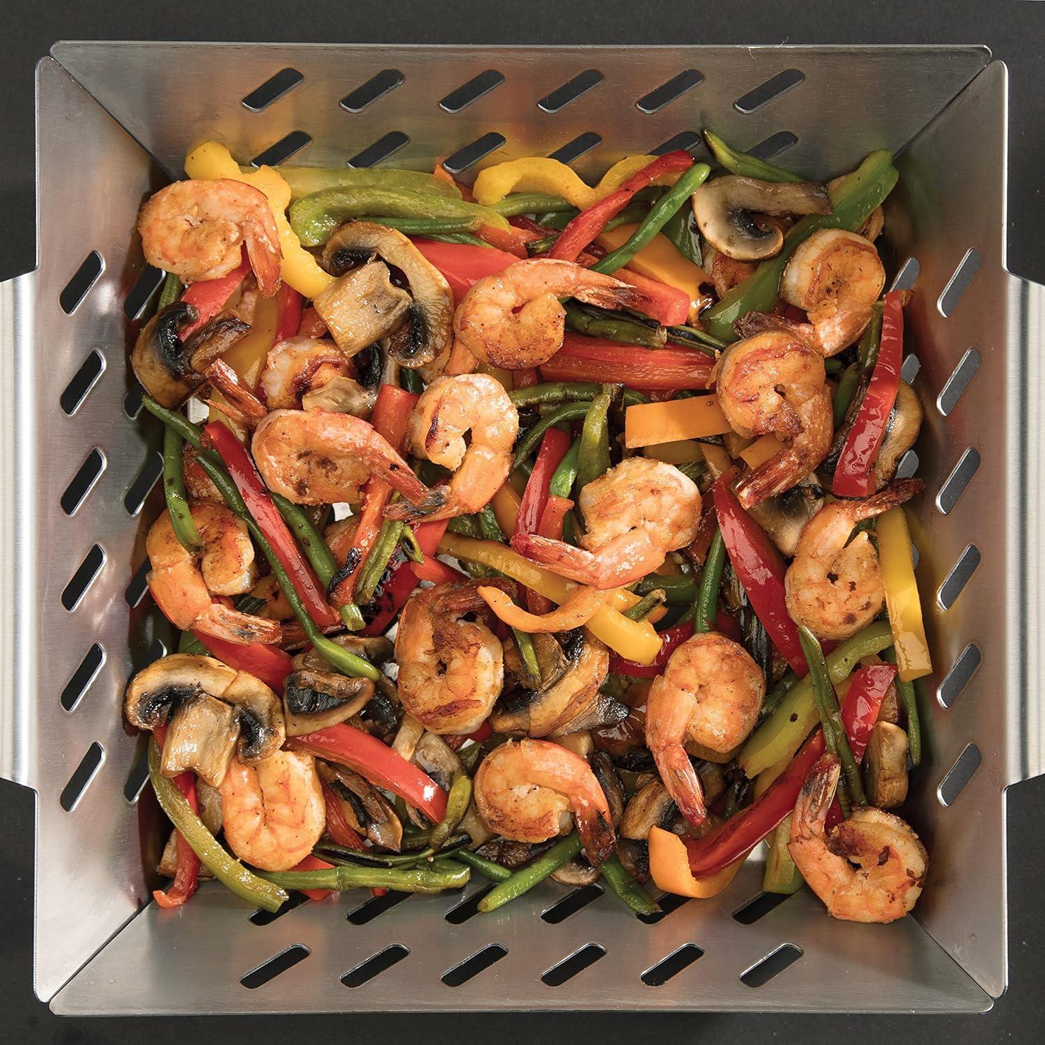 BUILT-IN HANDLE FOR EASY TRANSPORT: This durable basket shape wok has two handles that makes it easy to move from the grill to the prep table.