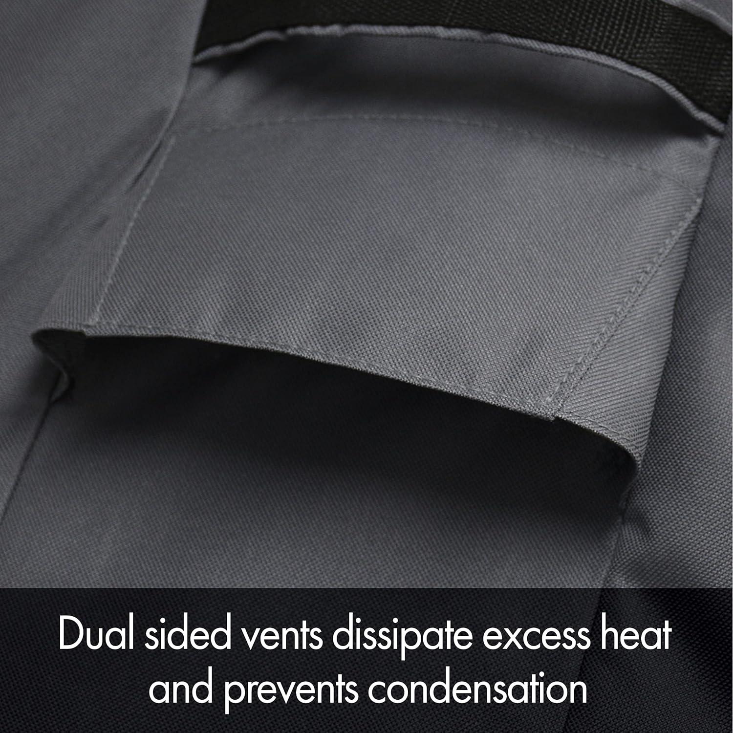 DUAL SIDED VENTS: To maintain a dry environment, the cover features side vents designed to dissipate heat and prevent condensation.