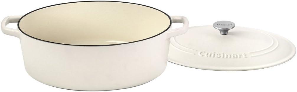 Cuisinart Chef’s Classic Enameled Cast Iron Oval Covered Casserole (Cardinal Red, 5.5-Quart)(Matte Snow White)