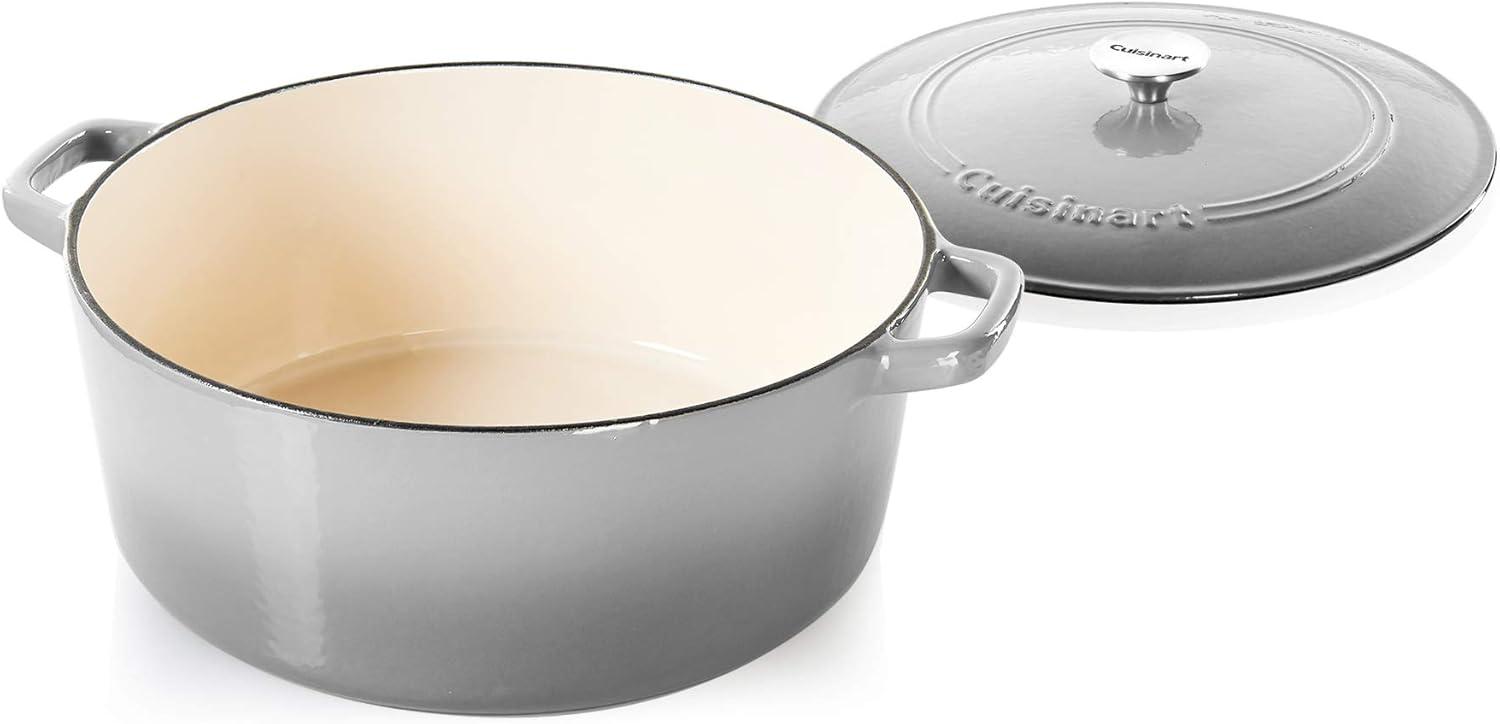Cuisinart Chef’s Classic Enameled Cast Iron Round Covered Casserole (Cardinal Red, 7- Quart)(Grey Gradient)