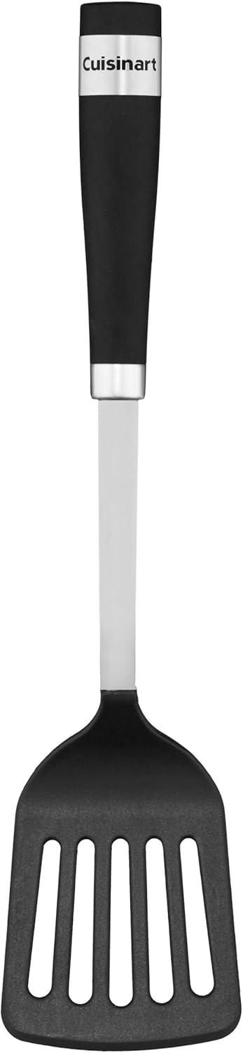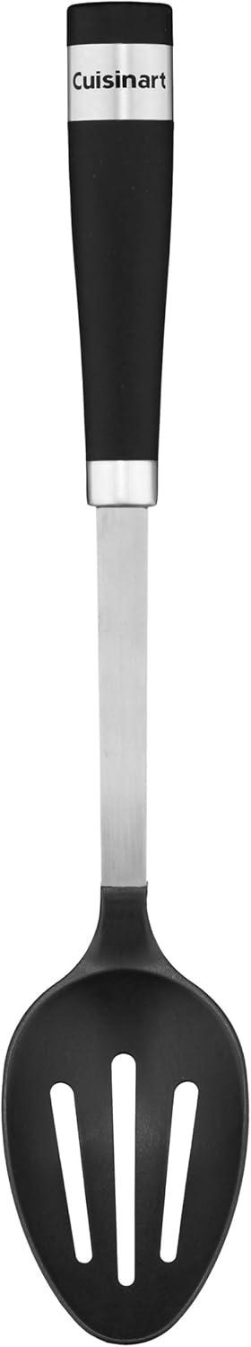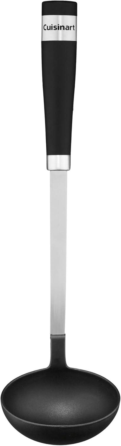 The Barrel Handle collection of kitchen tools & gadgets has a professional look and feel. Solid black soft-grip handles with stainless steel are rounded for universal comfort. From stirring a pot to ladling soup, this line of kitchen tools does everything the home chef needs and more. Cuisinart gathers the home cook's essential Barrel Handle design tools and makes them available boxed or in a crock that's ready for the countertop. Includes ladle, slotted turner, slotted spoon, solid spoon, pasta server, skimmer and crock. Features: Includes 6 tools and a crock