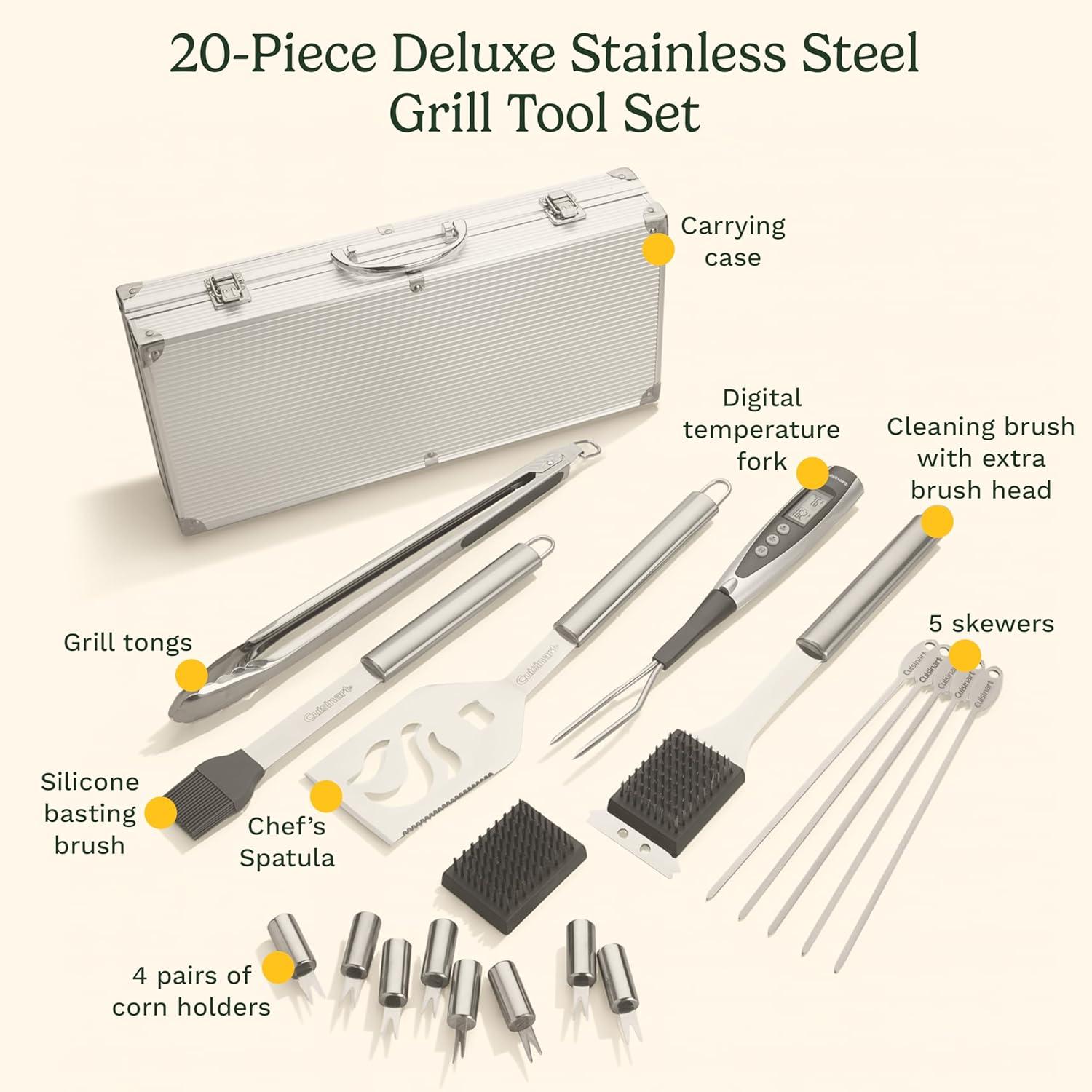 Cuisinart Deluxe Grill Tool Set, 20-Piece Grill Set, BBQ Accessories with Aluminum Case, Stainless Steel Grilling Accessories, BBQ tools, Grilling Gifts for Men, Father’s Day Gifts for Dad Husband(20-Piece Set)