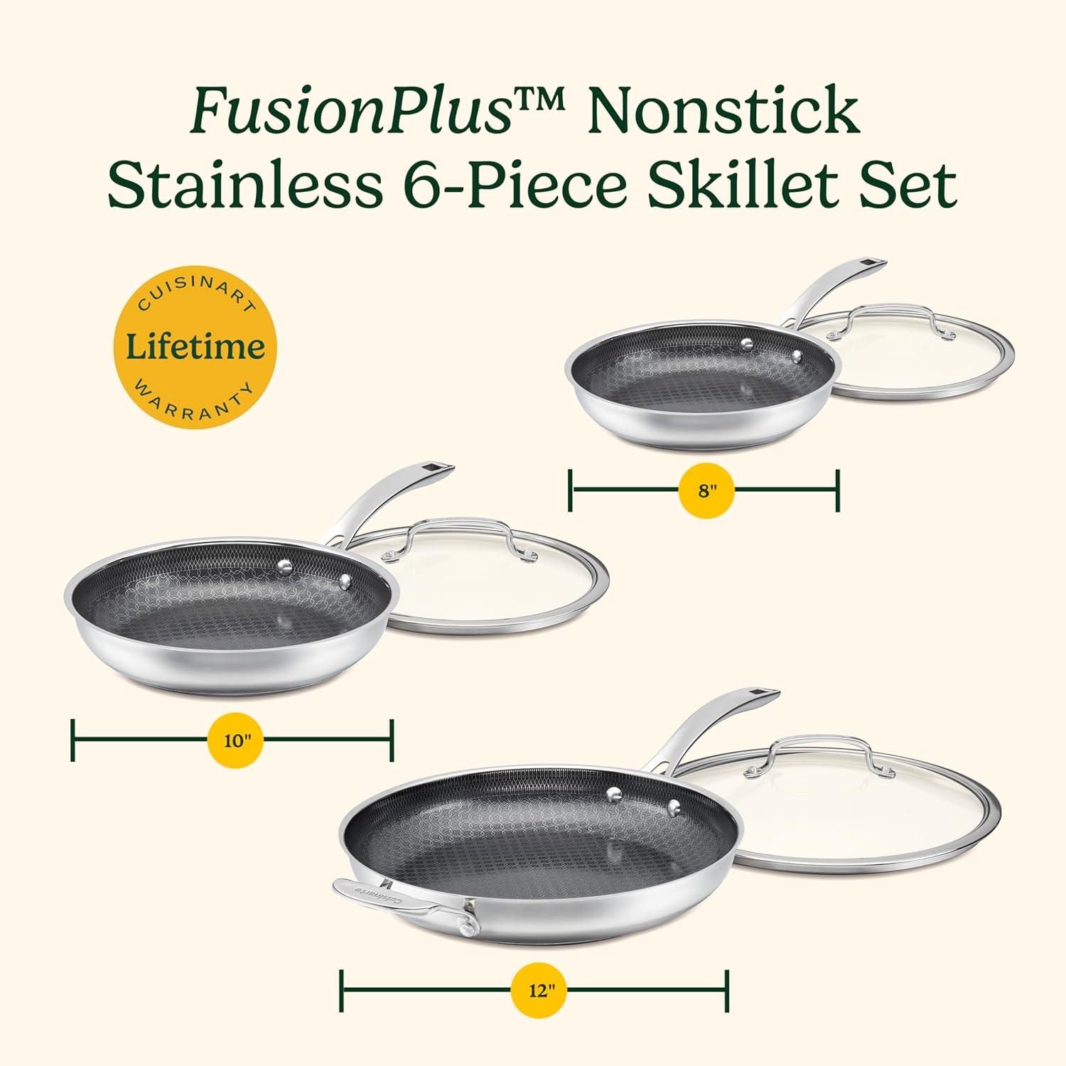 Cuisinart FusionPlus Nonstick Stainless Steel Cookware Set, 6-Piece Skillet Cooking Set with PFAS-Free PURELYSEAR Ceramic Non Stick Technology, Scratch Proof, Cool Grip Handles, Dishwasher Safe