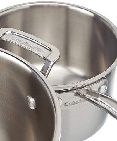 Elegant and contemporary, the Multiclad Pro line from Cuisinart consists of deluxe cookware for the professional home chef. The exteriors of the 18/10 stainless steel pots and pans feature a handsome brushed finish, while the interiors are mirror-polished for non-reactive, quick release of foods. The tri-ply Heat Surround technology sandwiches an aluminum core in the base and side walls for superior, even heating. You'll also find solid cast stainless-steel handles that stay cool on the stovetop, tight-fitting stainless-steel lids, and drip-free pouring rims. Each piece is oven-safe to 500 degrees F, and the pans are safe for broiler-use, too. This fabulous set consists of basics and more. The 1-1/2- and 3-quart saucepans with lids take care of everything from oatmeal to bechamel sauce, and the veggie steamer insert with its own lid fits the larger saucepan. Also included is a 10-inch open skillet that turns out perfect grilled cheese, hamburgers, and crepes; and an 8-quart covered stockpot for stews and soups. Dishwasher-safe, this set has no coatings to flake off or plastic to melt, and will surely be passed down to the next generation. –Ann Bieri