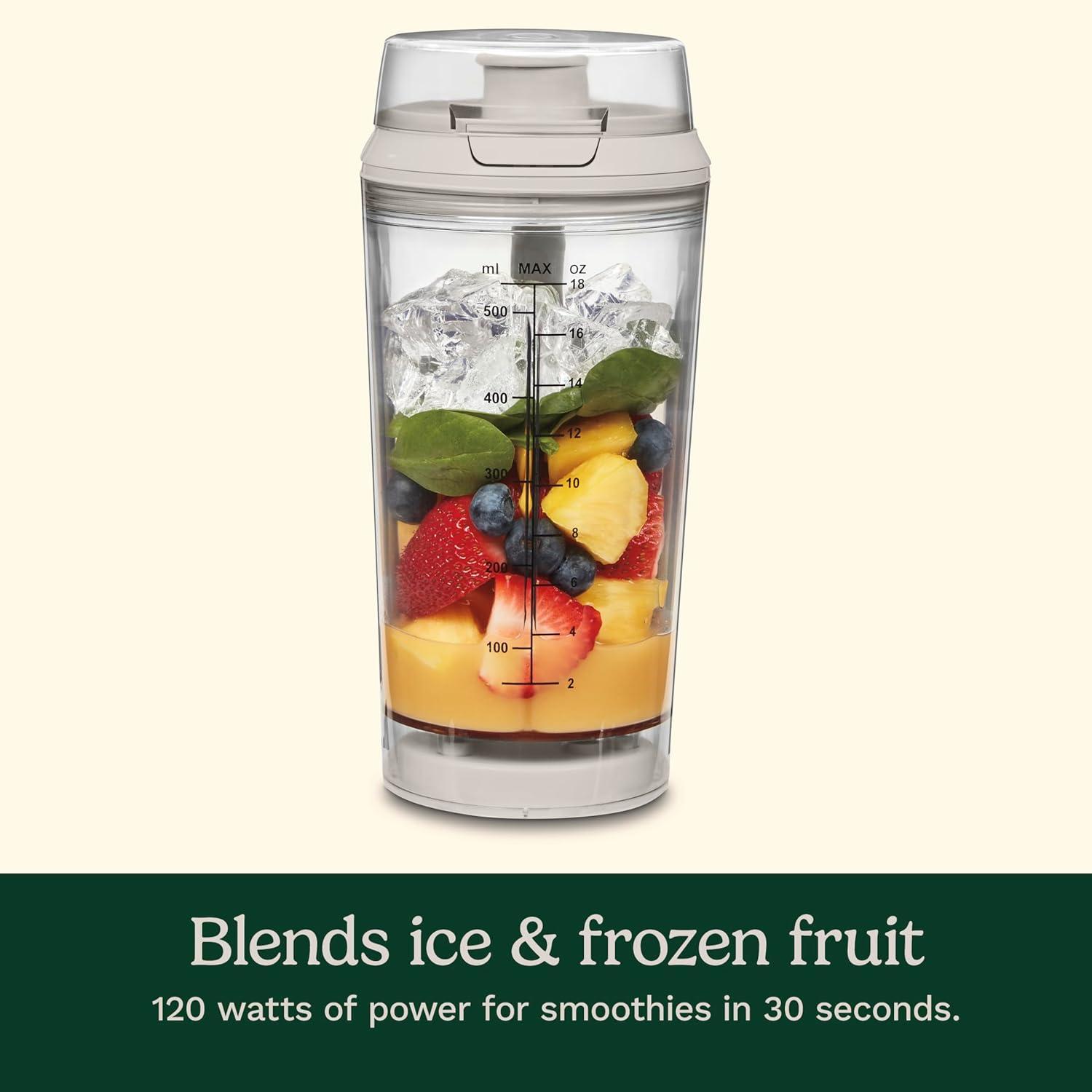 Cordless blender convenience meets corded power and performance with this portable blender that produces smoothies in seconds