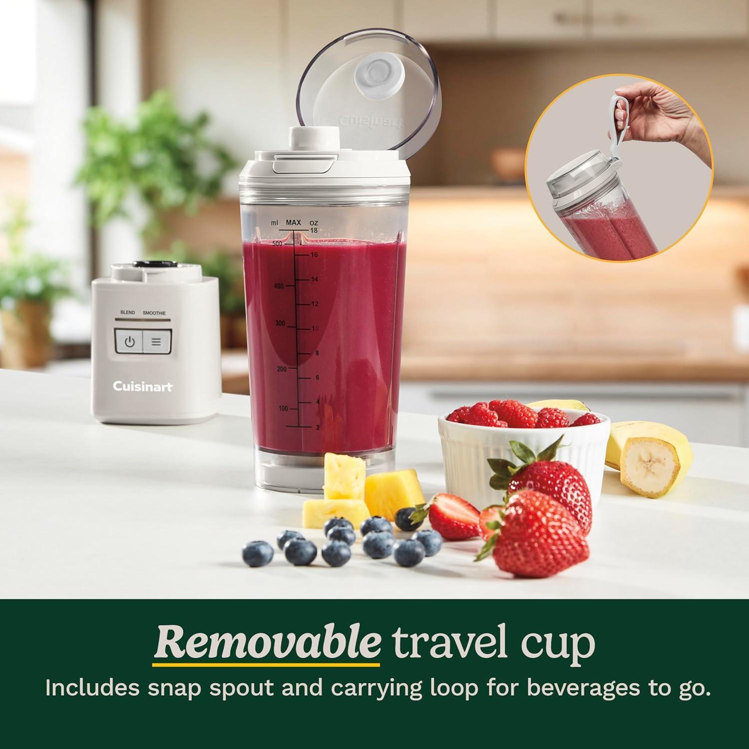 Snap spout lid and carrying loop make the travel blender ideal for beverages to go
