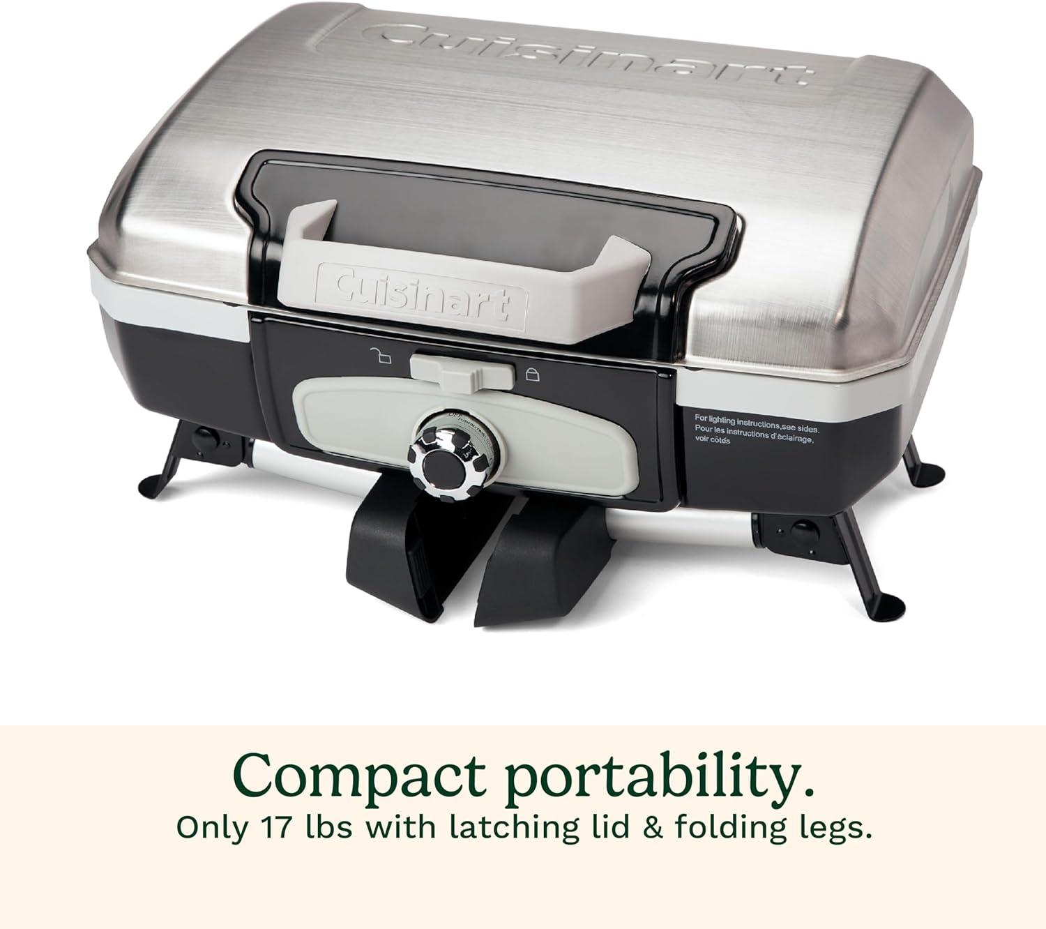 Cuisinart Petite Gourmet Portable Gas Grill, Compact & Lightweight Tabletop Small Grill for BBQs, Camping, Tailgates & Small Spaces, 5,500 BTU Burner Folding with Carry Handles, Black(Petit Gourmet Tabletop Gas Grill Stainless Steel)