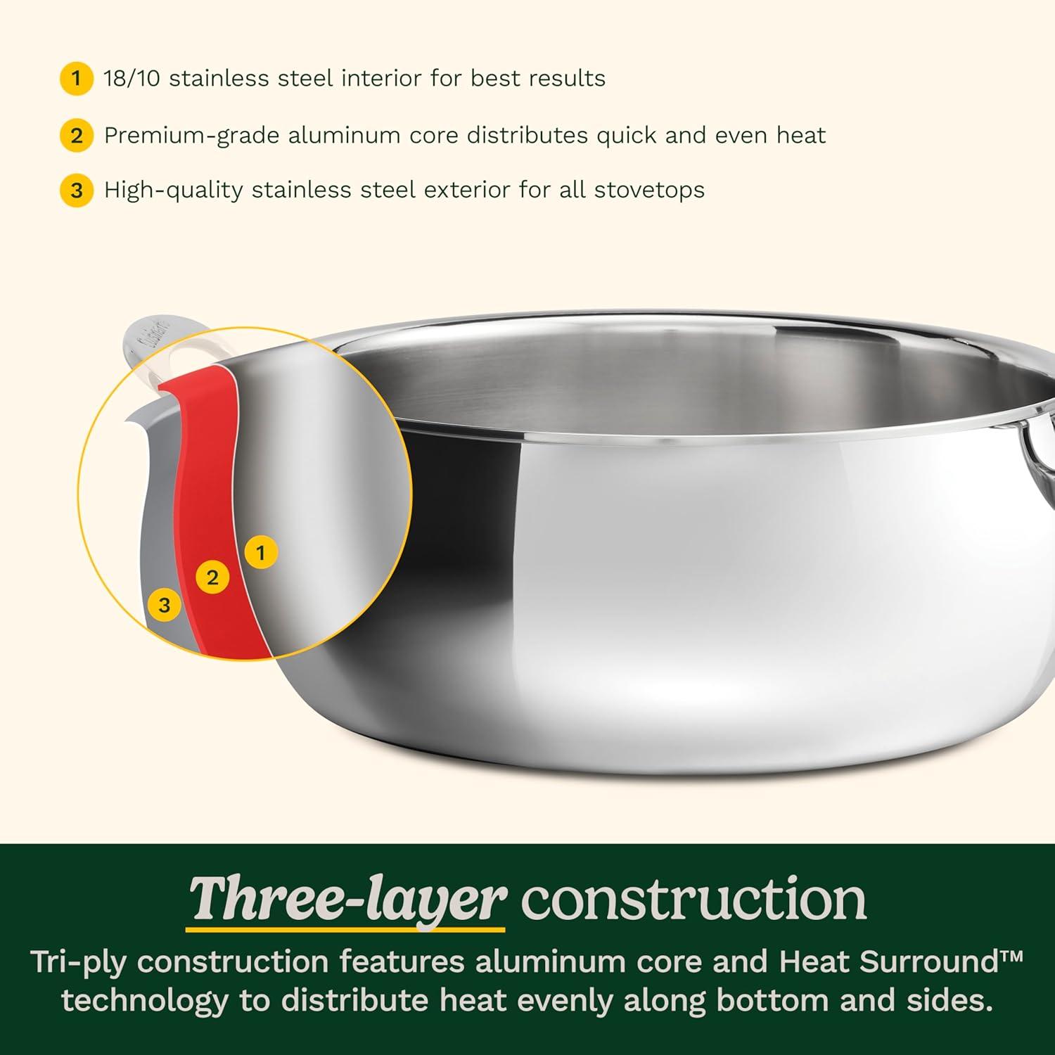 Professional triple-ply construction features an 18/10 stainless steel interior