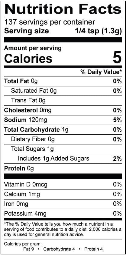 INGREDIENTS: Sugar, Salt, Dehydrated Garlic, Chili Pepper, Citric Acid, Spice (Red Pepper), and No More Than 2% Silicon Dioxide Added To Prevent Caking.
